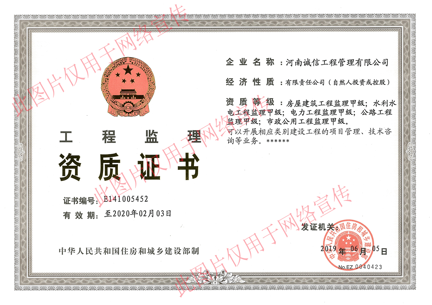 “電力工程監理甲級”資質,是電力工程監理序列的最高等級,其申報條件和審核流程極其嚴格縝密,對企業的資信能力、人才隊伍、科技進步水平、監理業績等方面均有著明確的要求。此次榮獲電力工程監理甲級資質,是對河南誠信在電力工程監理方面專業性的高度認可。電力工程監理甲級資質的獲得,將極大提升河南誠信電力市場開拓能力和開發層次,提高公司在建筑領域的核心競爭力。未來,公司監理業務范圍將進一步向多元化、立體化發展。