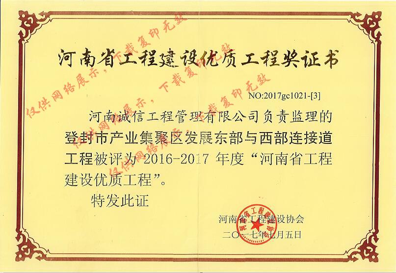 2016-2017年度河南省工程建設優質工程登封市產業集聚區