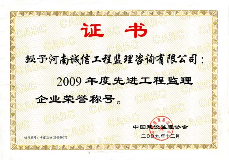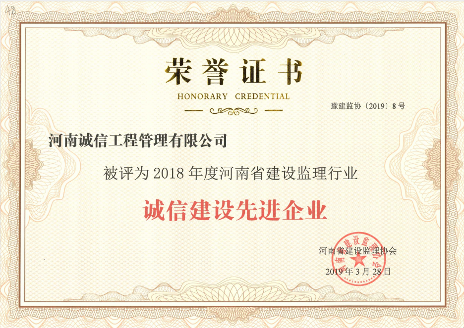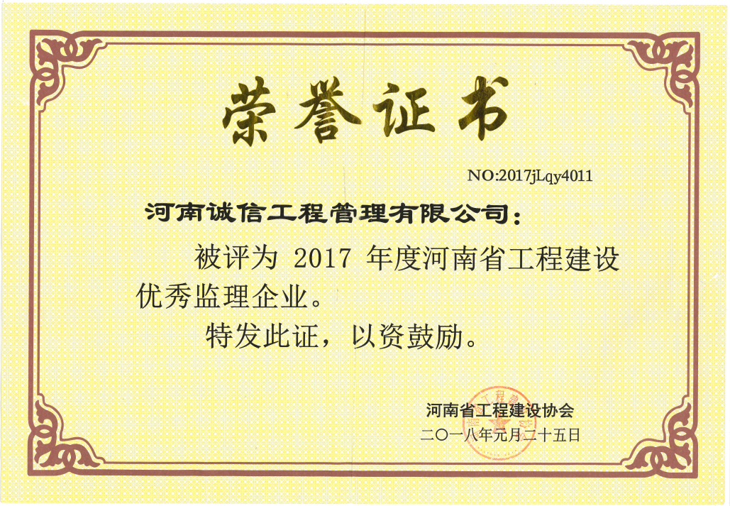 榮獲2013年度河南省工程監理行業“先進工程監理企業”稱號